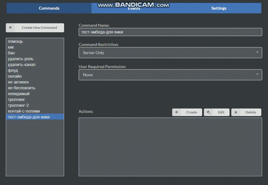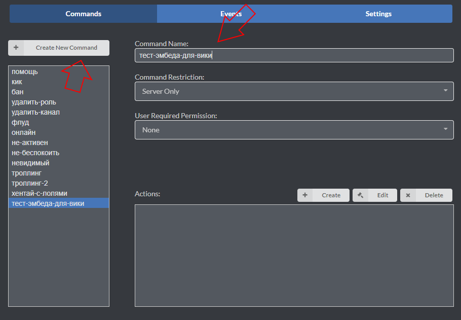 3. Нажимаем опять кнопку "Create", выбираем ту же самую категорию и выбираем уже "Set Embed Description".