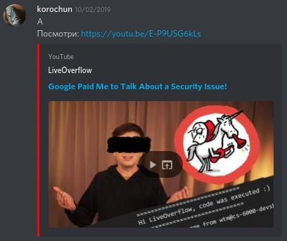 | video | Все | Появляется при отправлении ссылки на видео без <> | |