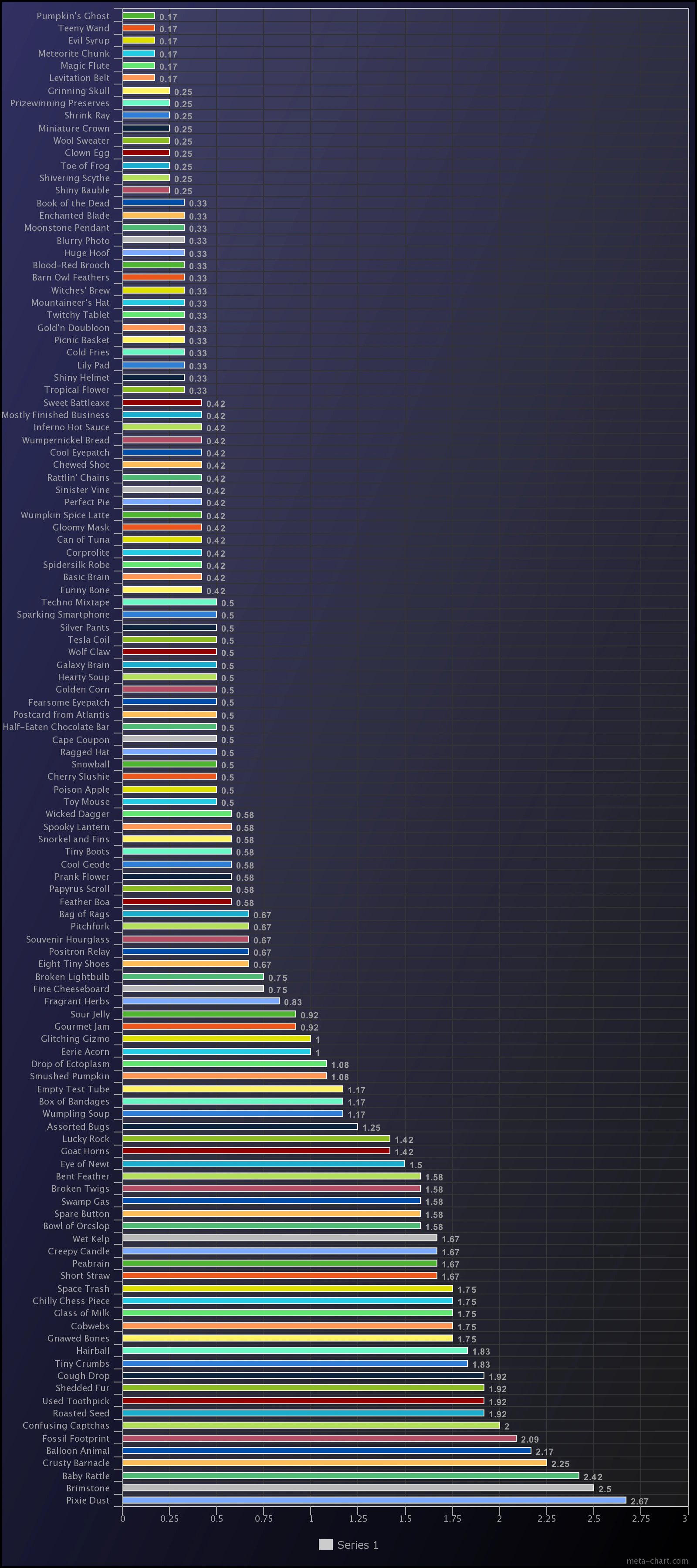 and here are the roughly estimated drop chances in percent (%):